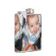 The flask itself is fine. It’s a cheap flask, obviously bought in bulk, however am prepared to overlook that. Given that it is a personalized item, I would have liked to have seen gift boxing instead of the generic packaging. Terrible printing, and/or quality. It’s a cheap, tacky vinyl. It is not cut straight and is also applied in a way that it is overhanging the bottom, causing the glue to catch on items and it will eventually roll and tear, damaging the wrap.