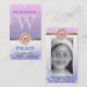 Pink Families on Duty Seal with floral on purple & white background and gold ribbon trim. Customised initial, names, phone number & email.
