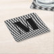 Customise monogram initial black white stripes square paper coaster
