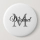 Customise Monogram Name White Template Elegant Trendy Huge Round Button.