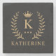Customise Name & Initial Black White Gold Monogram Stone Coaster