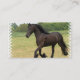 Gorgeous Friesian horse cantering in a field.