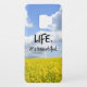 Life is beautiful Quote affirmation. Reads, "LIFE. it's beautiful." Simple yet powerful and inspirational words with a bright yellow field of flowers and blue skies with clouds. See more at Quote Life (Link below):