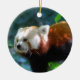 Red panda climbing from one branch to another.