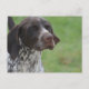 Brown and white German Shorthaired Pointer dog with a sweet expression.