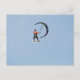 Kitesurfer sailing through the sky while kiteboarding.