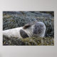 Harbour seal laying on a bed of seaweed scratching an itch.