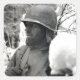 WWII photograph depicting an American soldier during a lull in the fighting near Bastogne during the Battle of the Bulge.