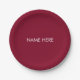 Customise with name, text minimalist burgundy paper plate