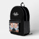 Customise Your photo custom monogram black Printed Backpack. Custom photo monogram Printed Backpack. Create a unique and personalised backpack with a custom touch! Choose a special photo, design a stylish monogram with your initials, and add your name initial for that extra personal flair. Select a font and colour scheme that suits your style, arrange everything in a visually appealing way using a photo editing tool.