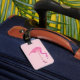 If you are going traveling to an exotic destination, this is the one for you! You can put your own name on the reverse side when ordering. You can also change the background color if it is all too pink. It is illustrated with a pastel drawing of a lovely pink flamingo.
