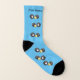 If your club color is blue, these are the perfect pair of lucky socks! These socks with two woods and a yellow jack are the perfect design to wear for your matches and roll-ups. This is a great gift idea for people who play bowls. It is also available with a white jack. You put your own name or club name at the top of the sock to personalise it, or just leave that blank. If you want a different background color, it is easy to change, but remember to change each side of each sock.