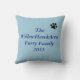 This item features four dark blue, grey and black square frames surrounding four dog photos. In the centre of the photographs is a black paw print. The background is shown in light blue on both sides. On the back side of the pillow there is text reading "The WillowHawkAcres Furry Family 2015" in an attractive dark blue font. This pillow is completely customisable and is set up as a template so you can easily replace the photos with those of your beloved dogs, cats, or other pets,.... or even your human family. After adding your photos use the edit tool to crop it so it fits in the frame. The pillow colour, text colour, and text font can easily be changed when you customise this product. The "kids" featured on this product are Mackenzie the English bull terrier, Astro the older black lab, Hana the younger black lab, and Riley the labrador retriever/rottweiler mix. I hope you enjoy creating your cherished gift as much as I did designing it!
