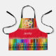 A Colourful Kids Artist Apron Designed With Coloured Pencils, Palette And Crayons You Can Add Childs Name