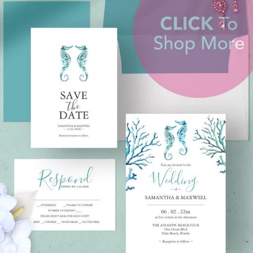 These customised wedding menu cards feature watercolor seahorses in shades of blue. Use the template fields to add your personalised details. A nautical choice for your beach wedding theme. For more affordable wedding menu ideas visit www.zazzle.com/dotellabelle