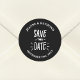 Customised Black Typography Wedding Save the Date Classic Round Sticker