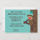 Customisable Boy Sock Monkey 5x7" birthday invitations that are just too cute! Features several sock monkeys with aqua blue hats and areas you can customise with your child's birthday party specifics!