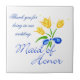 A beautiful bouquet of yellow tulips on a lovely ceramic tile; the perfect thank you gift for your maid of honour. Change text to say anything.