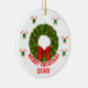 Customised Christmas Wreath with Candy Canes Ceramic Ornament
