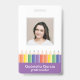 Add a cheerful touch to your school’s professional image with this modern and customisable teacher ID badge. Featuring a fun rainbow pencil illustration, a purple violet background, and a clear photo template, it’s both practical and playful. Personalise the front with your name and teacher's grade, and easily add school details on the back. Perfect for preschool, kindergarten, and elementary school teachers who want to combine professionalism with a touch of creativity. This template comes with a barcode on the back.