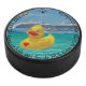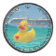 Something for the adult duck hunter. Cruising ducks are a fun crowd sourced activity. Get anything duck related put the hashtag cruising ducks and ship of origination on it, and hide for people to find on cruise ships. Put your own family hashtag on it to see where you duck ends up. Duck hunting is fun for the whole family - I cant decide if it is more fun hiding them, or hunting for them! Cute yellow duck with a red heat floats in a tropical sea with a cruise ship. Personalise all text.