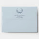 The inside features a classic and elegant band of engraved blue roses and foliage. The top flap features an engraved blue floral wreath encircling your monogram with two additional editable text fields. Shop matching products in Collections at the Grafixmom store.