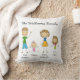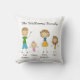 American MOJO pillow with customisable stick figure family including a dad, mum, girl, and baby girl on front, colourful circles print on back.