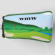 Customise this golf blade putter cover with your initials to make it your own. A brightly coloured golf club landscape fills the background and makes this cover stand out in your golf bag.