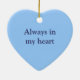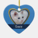 Add a photo of your cat, dog or other furry or feathered friend to the blue and gold frame on this blue heart. Type in your pet's name to appear on the dark blue ribbon below and you have a beautiful personalised ornament to pay tribute to a much loved animal friend. The 'Always in my Heart' message on the back of this ornament is also fully customisable.