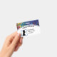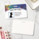 Modern, stylish VOLUNTEER photo ID badge, showing photo template which is CUSTOMIZABLE, so you can replace with same-shaped photo or logo. The curved heading and placeholder name and company text are all customisable too for you to add your own details. On the reverse there is optional text. The background colour and border can be changed by clicking Customise Further.