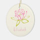 An outline of a lotus flower / water lily. Petals outlined in pink and the leaves outlined in green. Customise with a name or other text. Delicate eggshell white background.
