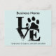 Get this adorable LOVE postcard with a puppy paw print to send as reminder to your customers about scheduled visits, specials, or as introductions for gathering new business. Customise it with your company hours, address, phone, or any other message. Don't miss our matching postage stamps in our store!