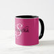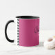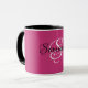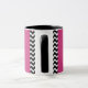 A dark tone magenta colour mug with a wave pattern a black inside complete with your custom monogram in the centre, just fill in the templates and pick your style and inside colour.