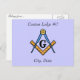Let your out of town visitors write back to their home Lodge using these simple postcards, customised to include your Lodge's Name, Number, City, and State. The inside includes "Tidings from ..." which can be amended to your city, lodge, or "the East", etc... as appropriate.