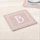 Customised Modern Monogrammed Pink & White Initial Square Paper Coaster