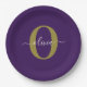 Customised Monogram Script Name Purple White Gold Paper Plate