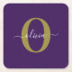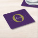 Customised Monogram Script Name Purple White Gold Square Paper Coaster