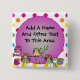 Pretty owls and a colourful background with polka dots of various colours on a button you can easily customise before ordering. We have matching invitations, postage stamps, and stickers!