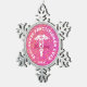 Customised Nurse Practitioner NP Graduation Pink Snowflake Pewter Christmas Ornament makes a great keepsake gift idea. The ornament is designed with pink faux glitter background. A white medical caduceus symbol is on the centre with personalised name in hot pink calligraphy script lettering. The text is "Best Nurse Practitioner Ever" in bold white letters curved over the symbol. Custom year is on lower centre area to make it even more meaningful and memorable.