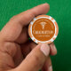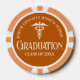 This custom orange medical school graduation party poker chip features classy white typography under a medical caduceus and your college name for the class of 2026. Customise with your graduating year under the elegant calligraphy for great personalised university graduate favours for a nurse or doctor.