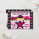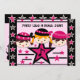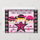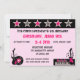 Party Like a Rock Star birthday invitations that are so colourful in pink and black, features three little rock star girls, guitars, stars, and a keyboard with areas you can easily add all her birthday party specifics!