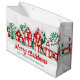 This cute custom real estate holiday gift bag is perfect for realty business marketing. Customise these Merry Christmas party gift bags with your company name under the red houses covered in winter snow and lined with festive green trees.