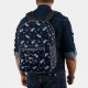 This allover print backpack features a rocketship pattern that is perfect for school children, ensuring their essentials can be carried with style and comfort. Designed for practicality, this backpack features adjustable padded shoulder straps, a spacious interior, a mesh side pocket, and an internal identification label. It offers ample storage space for books, snacks, and other essentials without compromising on its lightweight structure.