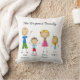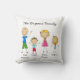 American MOJO throw pillow featuring a stick figure dad, mum, boy, and a girl with areas where you can add their names and family name!