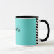 A robin egg blue colour and wave pattern mug with a black inside complete with your custom monogram in the centre, just fill in the templates and pick your style.