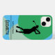 Personalise this iPhone 14 Case with your name or the name of your golf club. Silhouetted image of a woman golfer hitting a great drive right down the middle of the fairway is featured on this iPhone case.