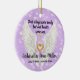 A tender tribute featuring white angel wings embracing a golden heart and cross, set against a soft purple background with delicate heart motifs. This customizable design offers space for personalized text, symbolizing eternal love, faith, and remembrance.
