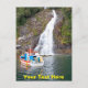 A fishing boat pictured against the backdrop of a waterfall; Quintupeu Fjord, Northern Patagonia, Chile - a beautiful corner of South America where the Andes plunge into the Pacific Ocean. [Our travel photography and designs are available as gifts for the home, cards, jigsaw puzzles, wall art and more]
