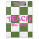 Stay stylish and organized with this adorable green checkered teacher clipboard! Featuring a trendy preppy design and bold “TEACH” lettering, this clipboard can be fully customized with your name perfect for adding a personal touch to your classroom essentials. Durable, functional, and cute, it’s ideal for daily use, lesson planning, grading, or walking the classroom in style. A perfect appreciation gift for teachers, student teachers, or back-to-school!
