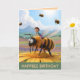 Cute, fully customizable Happbee Birthday card to send to anyone who likes cute birthday cards, featuring a bumblebee with a small girl flying on its back as they collect pollen—a proper cute birthday card with a high cuteness rating.